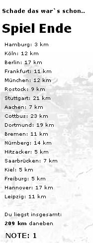 Spiel 1: 826km (Hitzacker???)