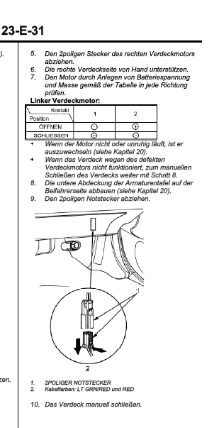 "Im Falle, daß das elekt. Verdeck nicht mehr schließt, möglichst