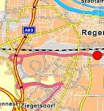 also A 93 Abfahrt Regensburg, dann Richtung Stadteinwärts,