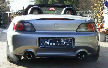 Nur die Auspuff-Endrohre sehen etwas verloren aus wegen den großen Ausschnitten in der neuen Heckschürze. Ersetze sie doch einfach durch die ovalen Blenden des neuen Modells (geht ja problemlos) und kostet nicht so viel! Oder hol Dir gleich einen Auspuff mit dickeren Endrohren wie Amuse oder Invidia (HKS hat auch nicht wirklich große Endrohre). -