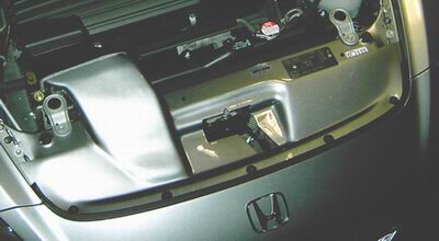 - Das Panel überdeckt den Bereich zwischen Kühler und vorderer Motorhaubenöffnung. Wenn man die werksseitig vorhandene innenliegende Verkleidung demontiert, hat das den Effekt, daß kühle, einströmende Luft direkter zur Airbox geleitet wird.