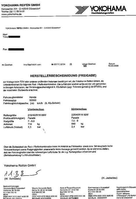 Falls jemand für eine andere Dimension die Freigabe benötigt, genügt eine nette Email an technik@yokohama.de