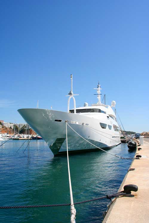 das ist die Lady Moura, nicht die grösste Yacht der Welt aber schon ganz anständig. Die liegt hier im Club de Mar in Palma, die haben unter anderem 2 Helicopter and Bord, einen künstlichen Strand usw, usw, usw, die gehört der Frau des Leibartzes eines saudischen Prinzen. Jetzt stell die mal die Yacht von dem Prinz vor.......könne wir im Juni ja mal vorbeifahren *grins*