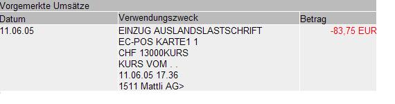 Evtl. hat Dir Deine Bank Gebühren berechnet! Allerdings sollten/müssen die separat ausgewiesen werden