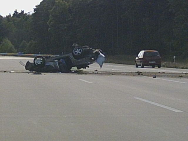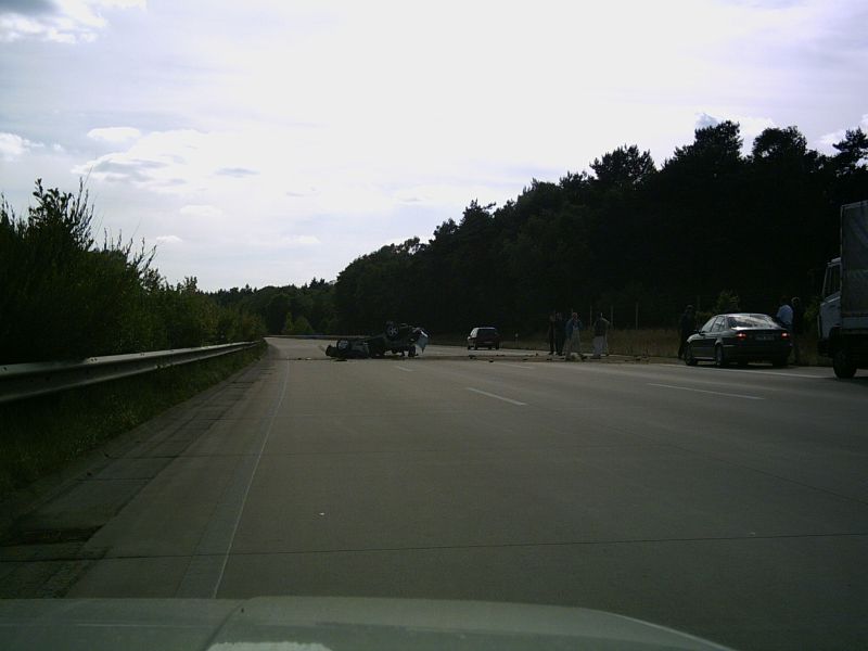 Ich habe das ganze ohne einen Kratzer überstanden, wenn ihr das Wrack unten seht, dann fragt ihr Euch sicher wie das möglich war. Habe in letzter Reaktion die Hände um mein Genick gelegt und den Kopf auf die Brust gepresst, keine Ahnung warum ích das Tat. Scheint mir aber geholfen zu haben.