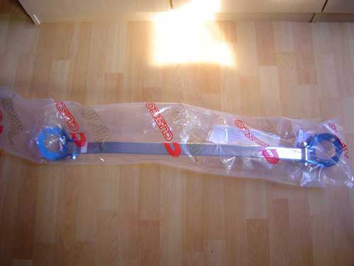 Die Domstrebe ist die aktuelle Version von Cusco für den S2000, sie besitzt eine Gravur (siehe Bild) auf der Oberseite. Aufkleber und Einbauanleitung