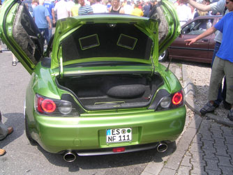 Dieser grüne S war auch in der letzten Ausgabe der Zeitschrift "Maximum Tuner" abgebildet, die es bei uns an der Tanke gibt. Sehr schöne Sattlerarbeit! Die Felgen und die Tieferlegung find ich allerdings sehr übertrieben und fast schon asymetrisch
