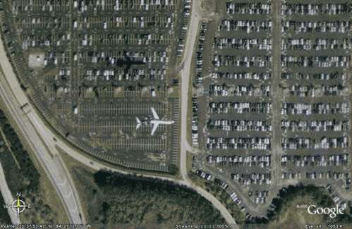 Ohne Flachs......die Fahrzeuge meiner Eltern sind zu erkennen....zumindest sind an den Stellen 2 Farbkleckse, die nich in die Landschaft passen