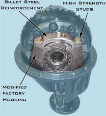 Developed to help retain the differential and ring gear from getting shoved out the back cover. Housing is sold on exchange basis. Photo shows it with the ring & pinion and differential already put back in. They are NOT included in this kit.......