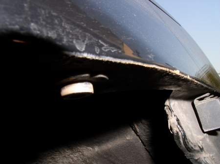Also an der linken hinteren Seite, wo der Übergang zwischen Stoßstange und Krosserie ist, ist es ganz schön am rosten!
