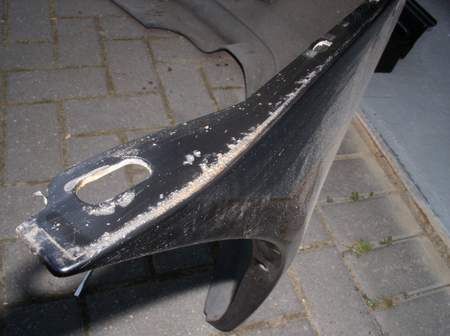 So, und jetzt kommts! Wenn man sich die Stoßstange ein wenig genauer anschaut, so sieht man das genau an dieser Stelle wo es am Gammeln ist, die Stoßstange eine deutliche Erhebung hat.