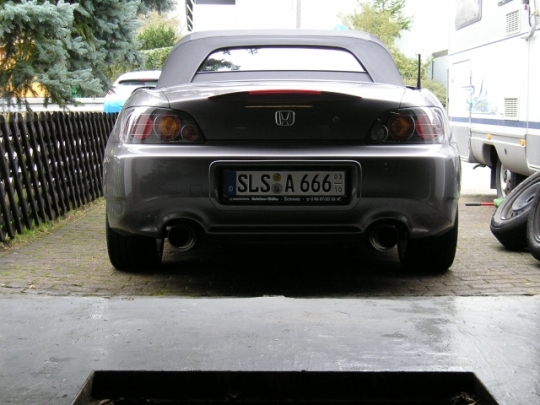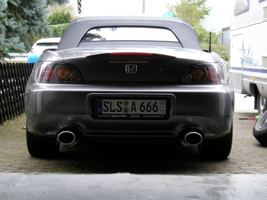 ich glaube Alexander möchte ein Bild der HKS an einer 05er Schürze haben. Wollte usrprünglich auch die HKS unter meinen 05er setzen, allerdings "schmiegen" sich die ovalen Endstücke der originalen Anlage besser in die 05/04er Schürze, als die runden Endrohre der HKS. Bilder habe ich leider keine