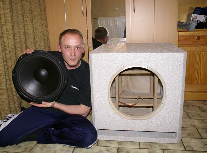 Lautsprecher ist ein TIW400 von Visaton 40cm, der Magnet ist echt und deswegen etwas kleiner als die auf optik getrimmten Carsubwoofer mit Riesenblechmagneten