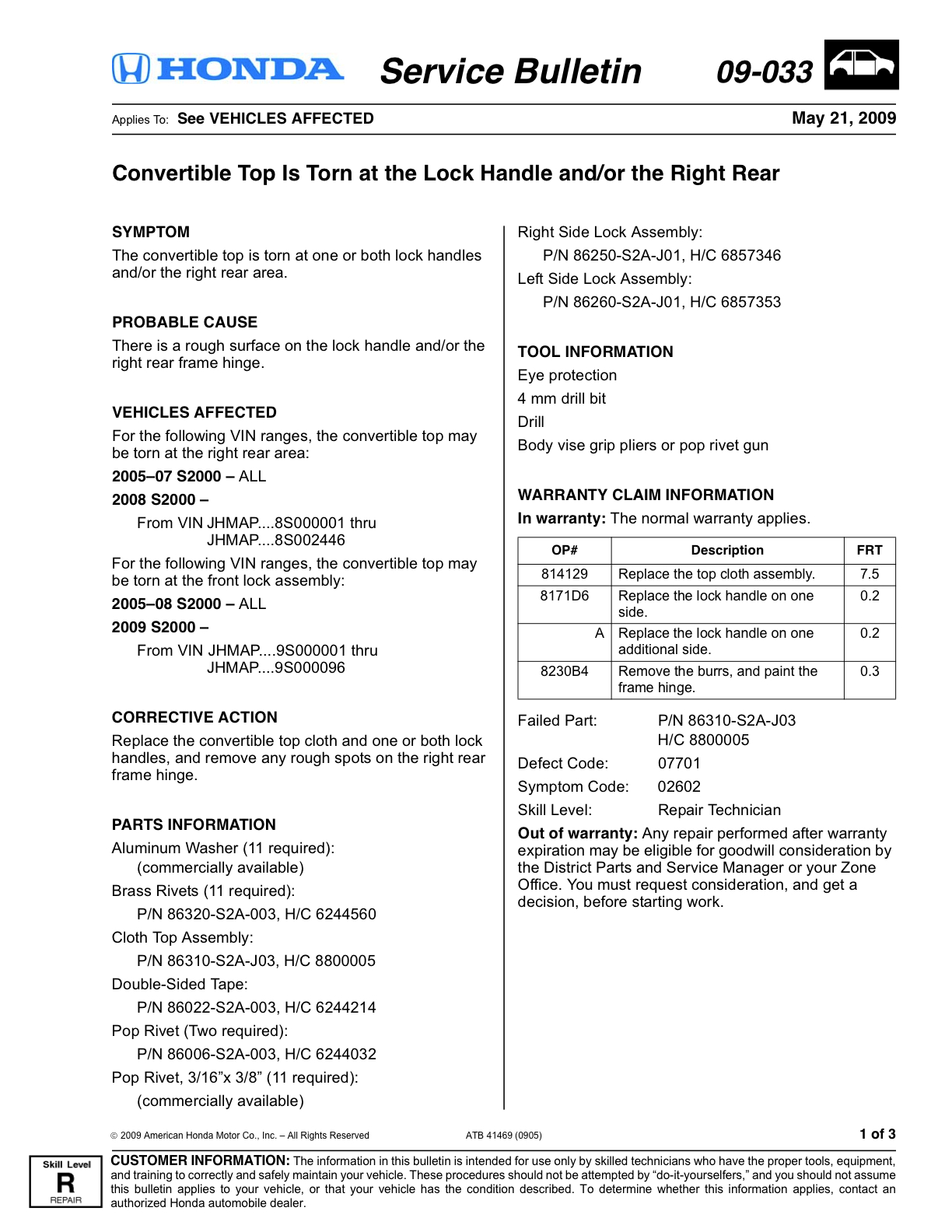 auch ich bzw. mein S2000 hat Scheuerstellen bzw. bereits kleine Risse. Kann mir jemand sagen, ob diese Schwäche mittlerweilen von Honda als Garantiefall behandelt wird?