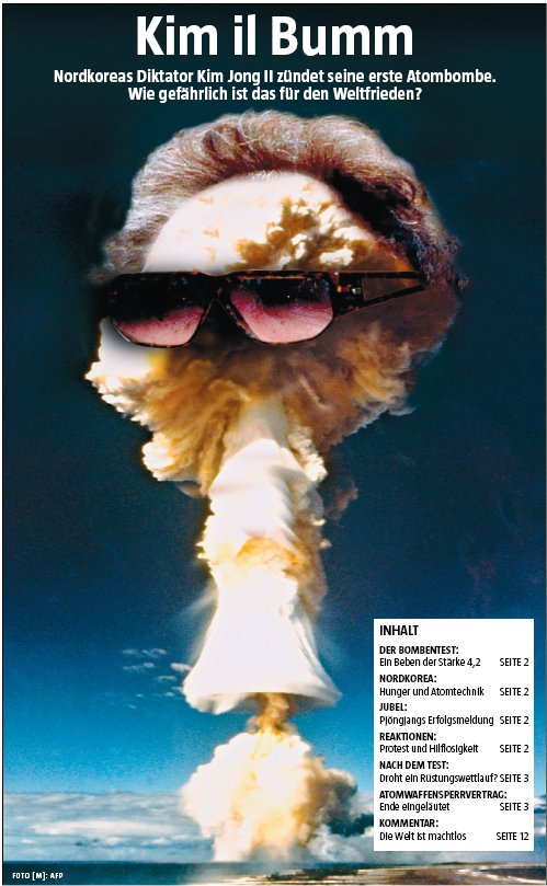 So lange sie ihre Knallfrösche bei sich zünden, ist mir das egal. Wenn es danach ginge, müßten alle Mächte ihre scheiss Atomwaffen abbauen. Beim Iran sieht das schon anders aus, die sind ja etwas fanatischer drauf. Ausserdem ist der Iran näher dran an Europa als Korea. Ist ein bishen egoistisch gedacht was?? Aber ist doch war....