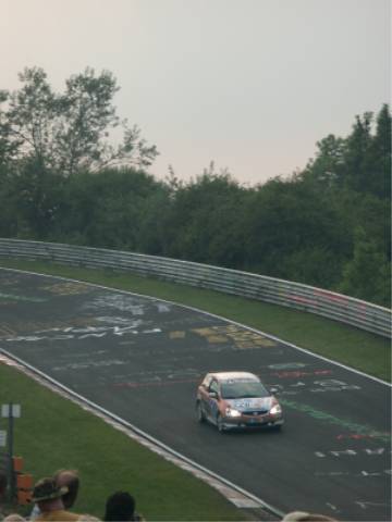 Noch ein Fahrzeug der Gattung "Raucherauto". Der hat aber bis zum Schluss durchgehalten. Es kam eben beim Boxenstopp der Arbeitsschritt "Heckscheibe putzen" dazu. -