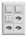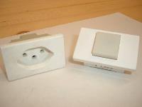 Die hübschen (= EDIZIOdue) gibt's in 2 Varianten, eine ebene "Platte" mit 3 Löchern auf der der Stecker aufsitzt oder mit Loch zum Versenken des Steckers. Und beide in verschiedenen Farben, Plastik oder Metall.