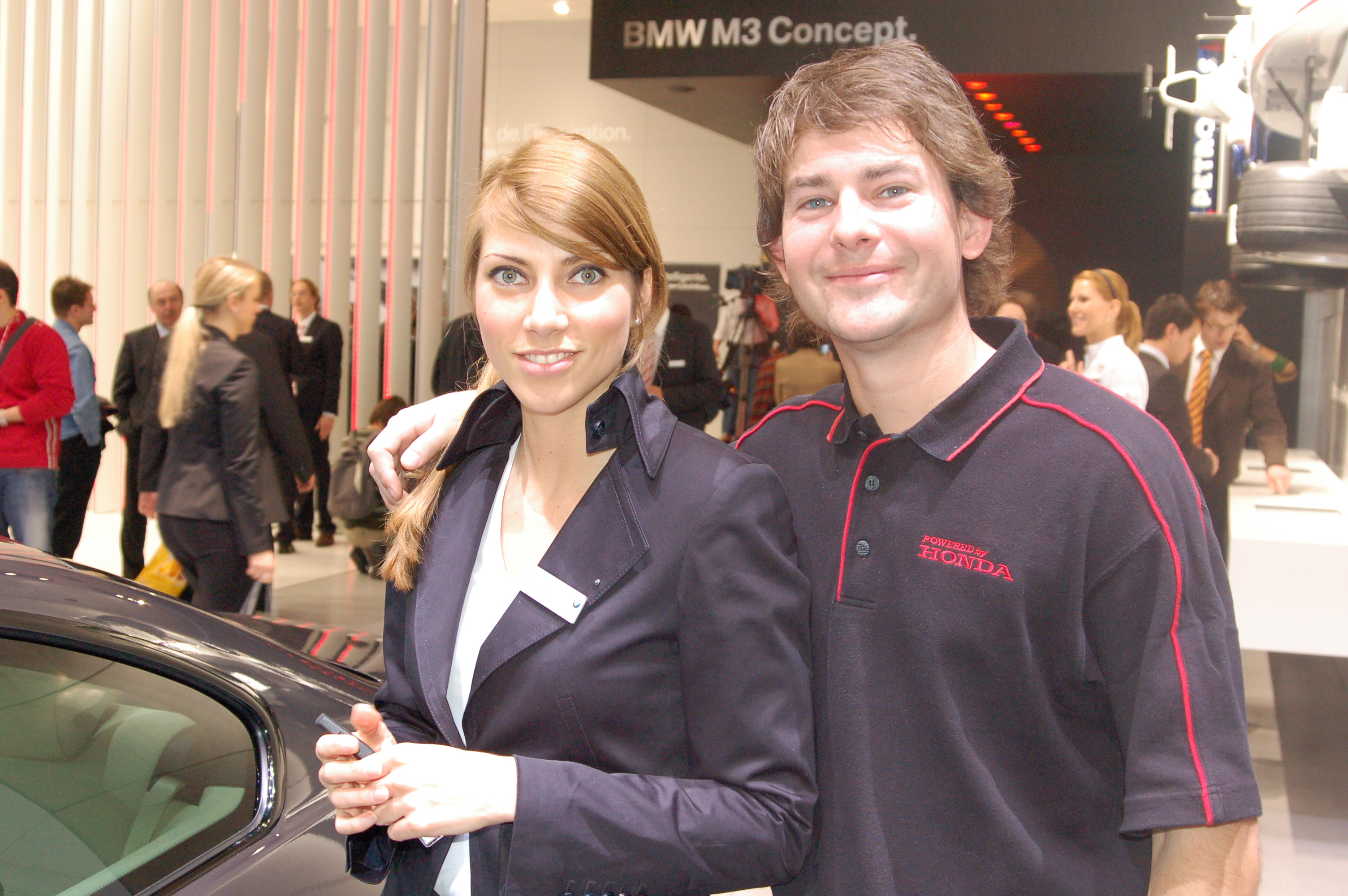 Ich denk das ist ein Autosalon, und kein Laufsteg, oder hat hier ein Rollentausch stattgefunden, Auto schmückt Frau.