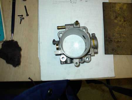 hier die alte Drosselklappe, dahinter die neue... sie hat 10% mehr Fläche...