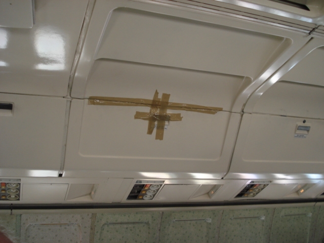 Dein erstes Bild zeigt nur die Hattracks. Das sind nur Innenverkleidungsteile. Wenn da was kaputt ist -wenn störts. Hab ich auch schon bei Lufthansa gesehen (allerdings nicht so krass).