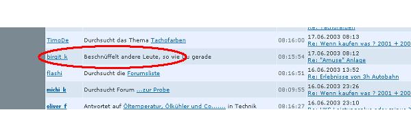 Kleiner Tip: wer sich nicht erwischen lassen will sollte sich vor dem Schnueffeln ausloggen, dann schnueffelt nur ein gast
