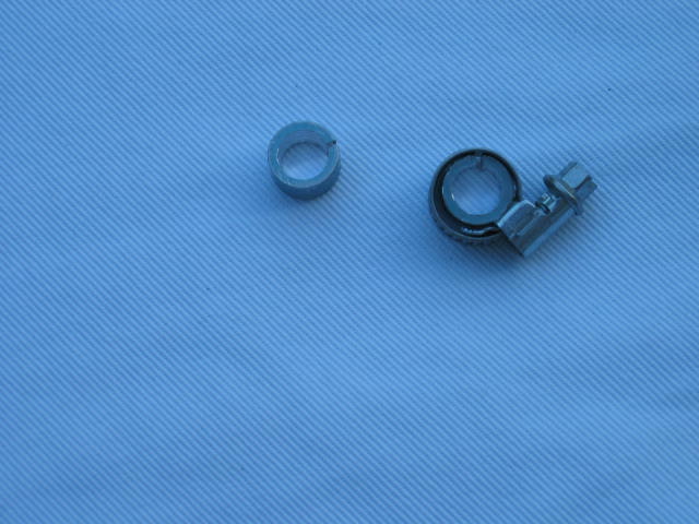 Bei mir hat das mit der Schelle nicht richtig hingehauen, da sich die Schelle nicht soweit zusammenziehen ließ, das sie richtig fest auf der Halterung sitzt, also habe ich eine Aluminium Buchse genommen, auf einen cm aufgebohrt, dann eingeschlitz und mit einer Schelle auf der Halterung festgezogen. Sitzt nun bombenfest.