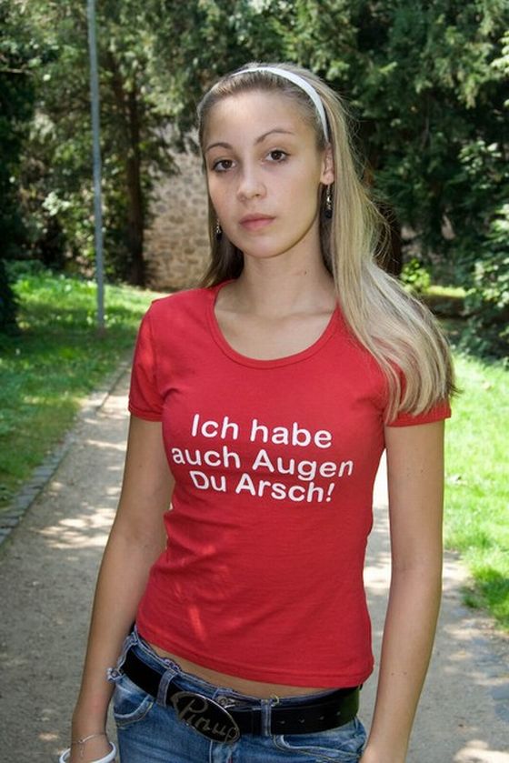 ....und das passende T-Shirt dazu:Die hat das doch nur an, dass ueberhaupt jemand Ihre Br... bemerkt