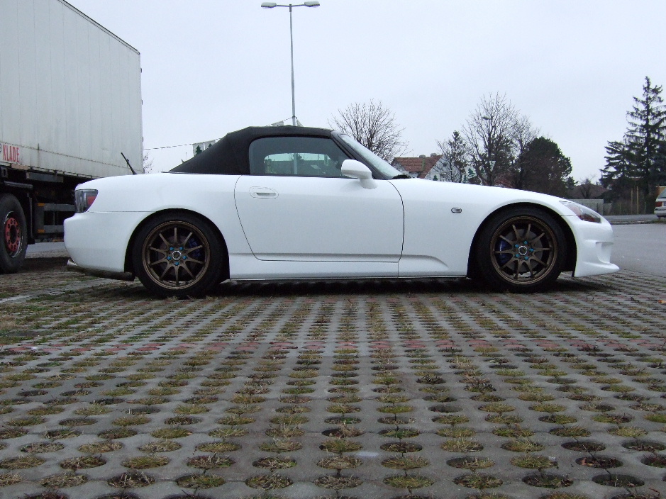Vielleicht wäre etwas schwarzes an der Seite gut, denn würde das Auge daran haften bleiben. Wie wär's mit einem schwarzen S2000 Schriftzug unten an den Schwellern -so ähnlich wie beim 911 Carrera?