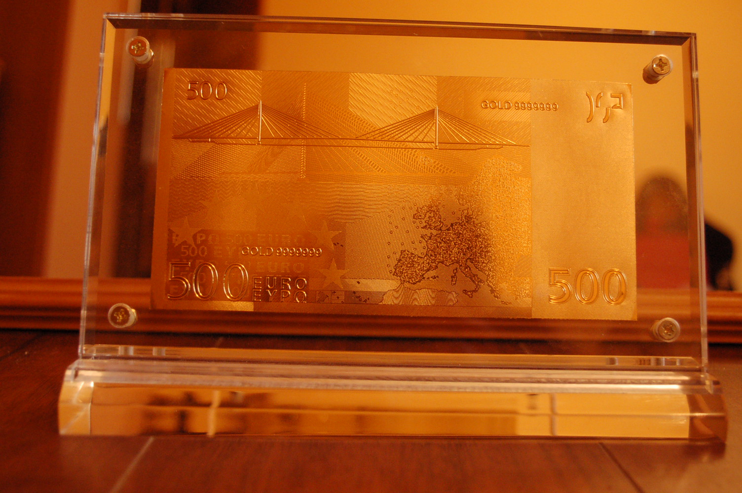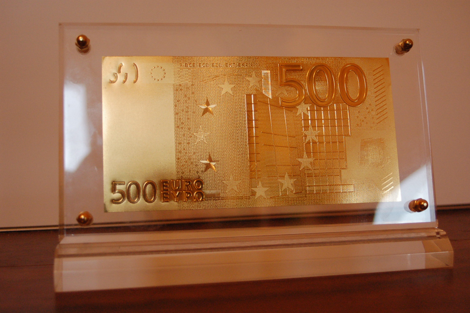 Ist in einen Glasrahmen eingefasst.
