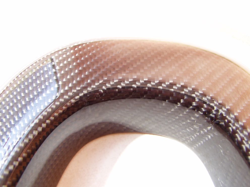 es gibt hundert prozentig gefärbtes Carbon. Es ist weder laminiert noch Glasfaser oder beschichtet es ist schlicht und einfach gefärbt.