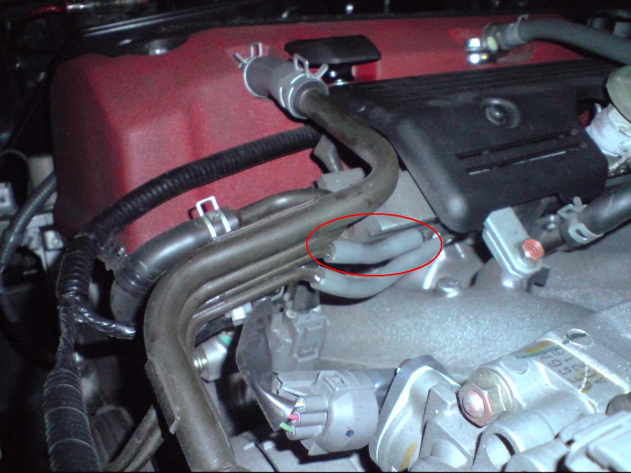 Ich habe heute bei der Ölkontrolle bemerkt dass sich ein Schlauch in der Nähe vom Ansaugtrakt (siehe Bild, rot) gelöst hat.