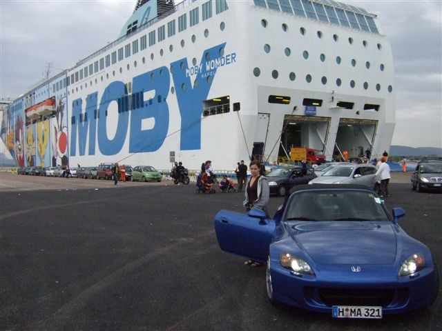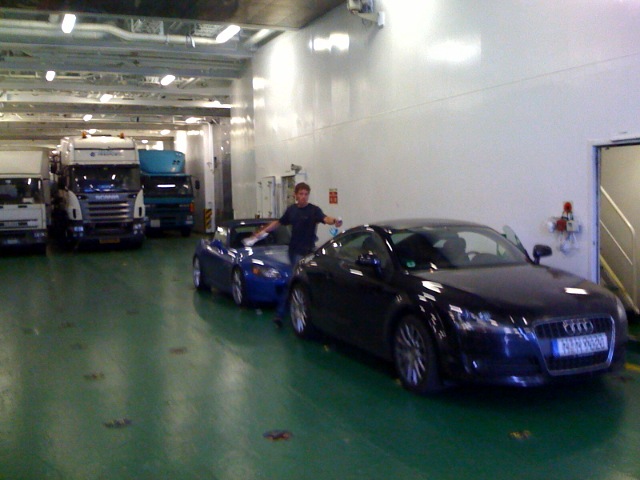 Der Chaos in Genua und die Beschilderung ist auch Wahnsinn! Haben aber die Fähre gefunden. Hatte dann Angst ich würde die Auffahrt auf die Fähre mit dem tiefen Nummernschild nicht schaffen, Holger hat mich ja schon vorgewarnt! Aber das hat alles geklappt! Die Italiener haben da schon auf den S geachtet, mich schräg über die Klappe fahren lassen, und auch auf der Hinfahrt habe ich nen super Parkplatz bekommen, als der Einweiser meinen S sah.