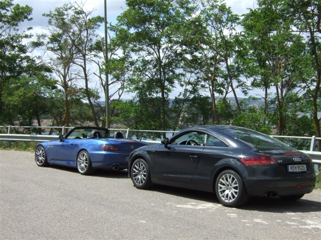 Den einen abend habe ich Taxi gespielt weil Augustinus und Frank was trinken wollten und wir sind von Cagliari nach Monte Nai zu dritt im TT zurück! DSG, Magnetic Ride Fahrwerk, Michelin PS2! Ich kann nur sagen dass der TT sicher was anderes ist als nen S, aber langsamer nicht wirklich mit dem passenden Fahrer drauf! Wir sind nachts ne falsche Ausfahrt raus und haben die alte Strecke zurück genommen und nicht die Schnellstraße! Ich sage nur, 35 Minuten mußte ich das Fernlicht nicht ausmachen und eine Kurve nach der anderen! Bei solchen Passagen ist schalten am Lenkrad per Wippe schon sehr geil!