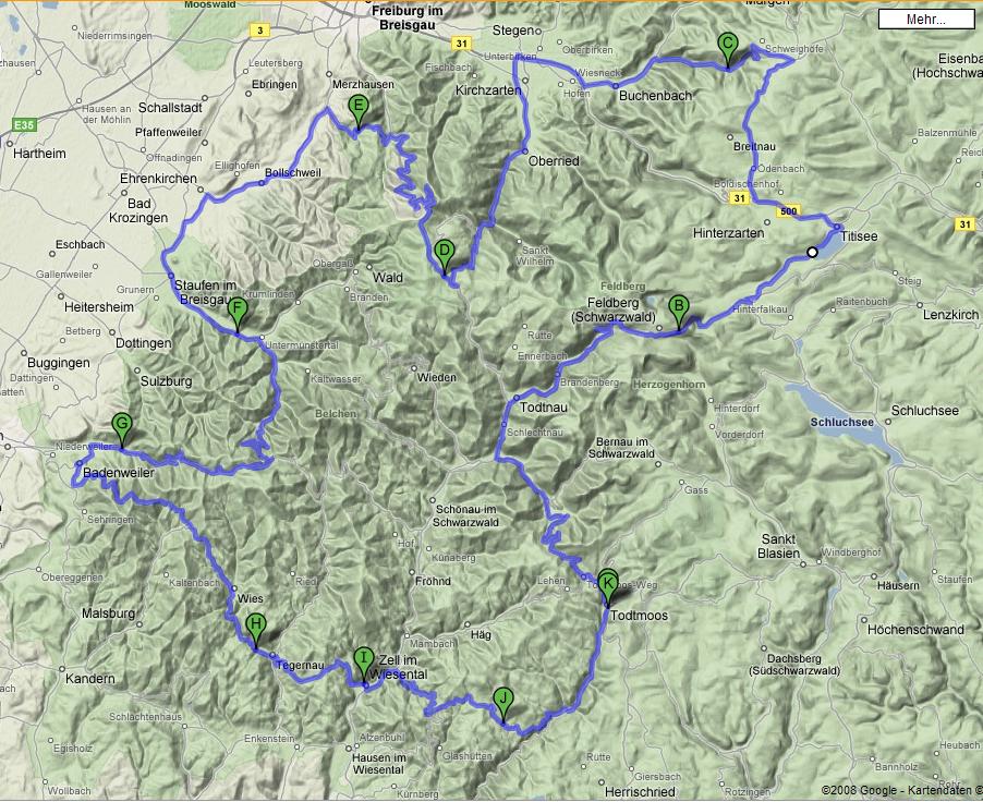 Für Mittags gibts die 2 Restaurants von Martin seiner Tour zur Überlegung, in Bad Krozingen Kafee Z oder in Kirchzarten das Fiesta.
