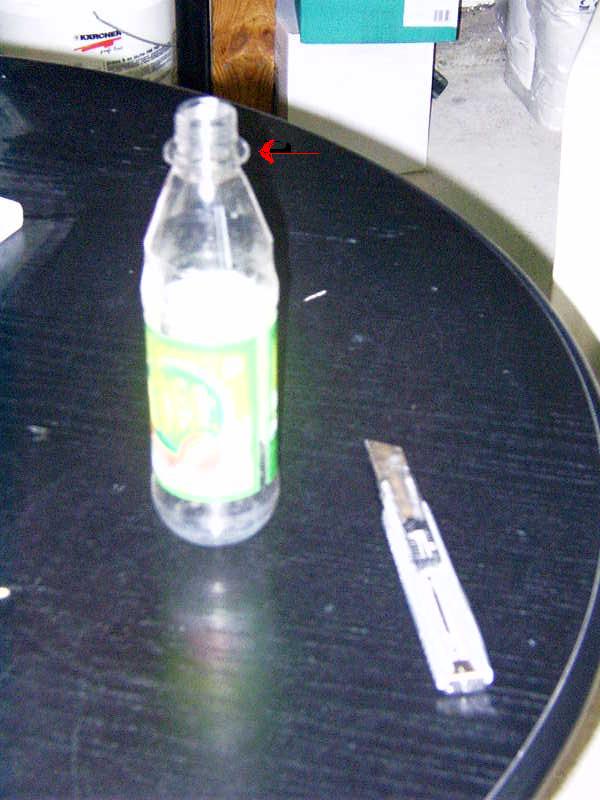 Hartkunstoff und wabbeln nicht so ) die so einen Kunstoffring am Schraubhals haben , siehe Pfeil, und ein Cuttermesser Bild 1