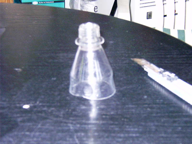 Nun Oben an der Flasche den Groben Kopf abschneiden und ggf. die Grate/