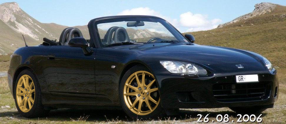 Ich musste im Internet ein Foto eines Facelift-S2000 in Berlina Black mit den OEM Felgen suchen, da ich auf meinem neuen S2000 die OEMs noch nie drauf hatte. Gefunden hab ich nur dieses, und da die Sitze auf dem Bild nur schwarz, meine aber schwarz/rot sind, hab ich auch da noch ein wenig nachgeholfen. Ebenfalls hab ich ihn ein wenig tiefergelegt, da meiner einen Satz H&R Federn verbaut hat ![]()