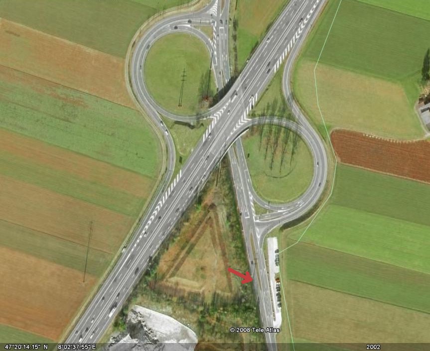 Ausstellplätze bei der Autobahnausfahrt Aarau West, Fahrtrichtung Luzern (wenn besetzt: Parkplatz gegenüber)