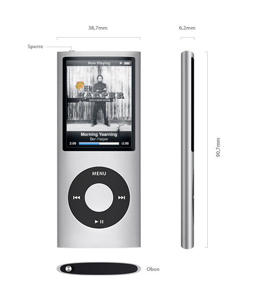Die vierte Generation des iPod nano besitzt nicht nur Apples bahnbrechende Genius Technologie, die auf einen Klick Wiedergabelisten von stilistisch zueinander passenden Songs erstellt; er besticht außerdem durch ein schlankes und elegantes Design mit einer innovativen, gebogenen Aluminium- und Glas-Abdeckung in lebhaften Farben.