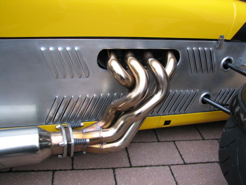 Der Exh.-Krümmer, vor der Drosselklappe nichts als der LuFi und das alles in diesem puristischen Super 7.Gruß