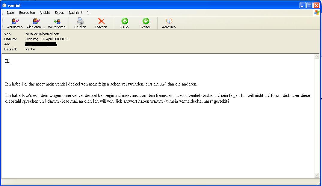 Ach: und wenn jemand etwas im S2ki-Forum lesen sollte wäre ich froh über den Tipp.. schliesslich bin ich dort nicht angemeldet und vieleicht sind ja noch mehr solche Mails verschickt worden ![]()