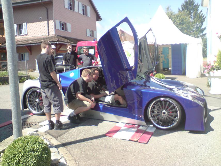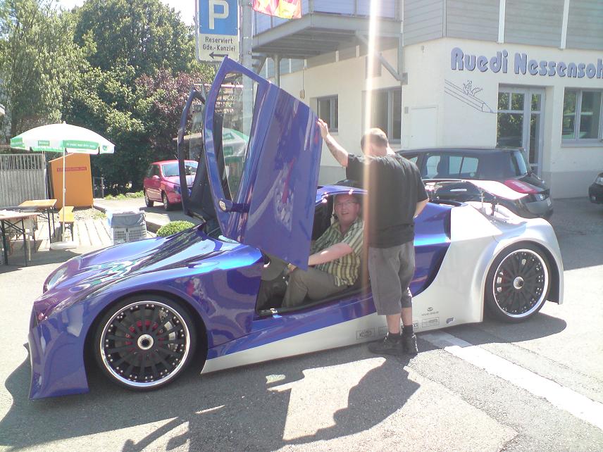 Nun, offensichtlich ist es kein Phantom, obwohl ich nicht weiss, ob die beschriebenen Daten alle stimmen oder überhaupt schon getestet wurden. Auf jeden Fall ist er määächtig tief, so tief, dass er steckengeblieben ist 8o. Jemand hat gesagt, dass noch ein anderes Fahrwerk rein komme. Aber seht selbst: