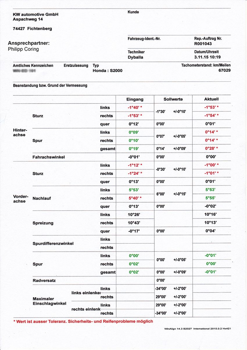 Einige werden jetzt sagen, das ist aber wenig Sturz auf der VA, aber mehr braucht man eigentlich nicht fuer ein Strassenauto.