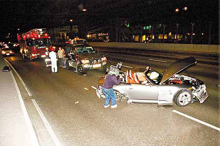 Also mal abgesehen von dem Feuerwehrauto und dem Taxi, die nicht gerade europäisch aussehen, kann das nur in den USA gewesen sein. Welcher Staat hat sonst so schlechte Autofahrer, die auf der geraden Straße solche Unfälle machen???