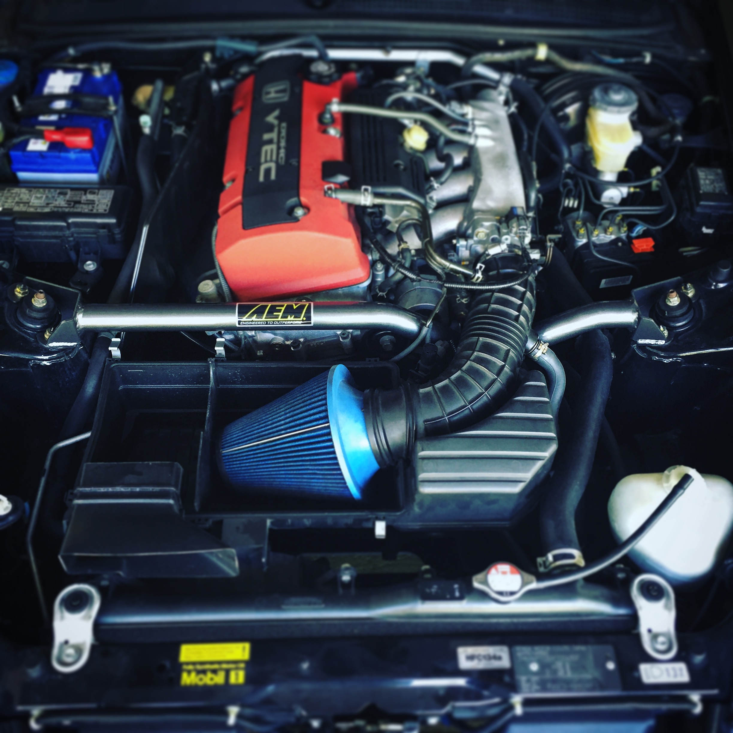 Bin soeben zufällig über diesen Thread gestolpert. Ich habe die AEM Domstrebe verbaut mit dem Serien-Luftfilterkasten. Passt problemlos! (Ich habe für das Foto nur die Abdeckung entfernt, damit es besser ausschaut