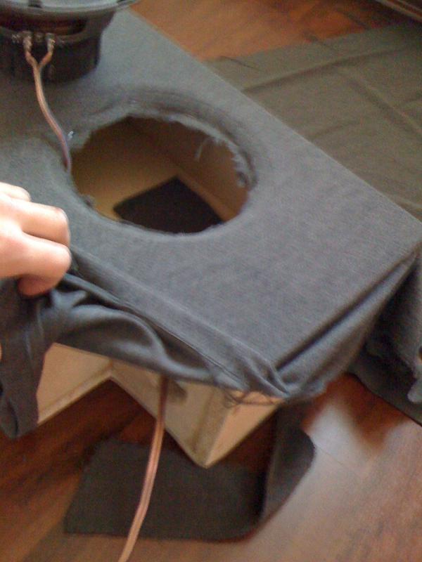 Dan das ganze mit Stoff überziehen. Natürlich in passendem grau.