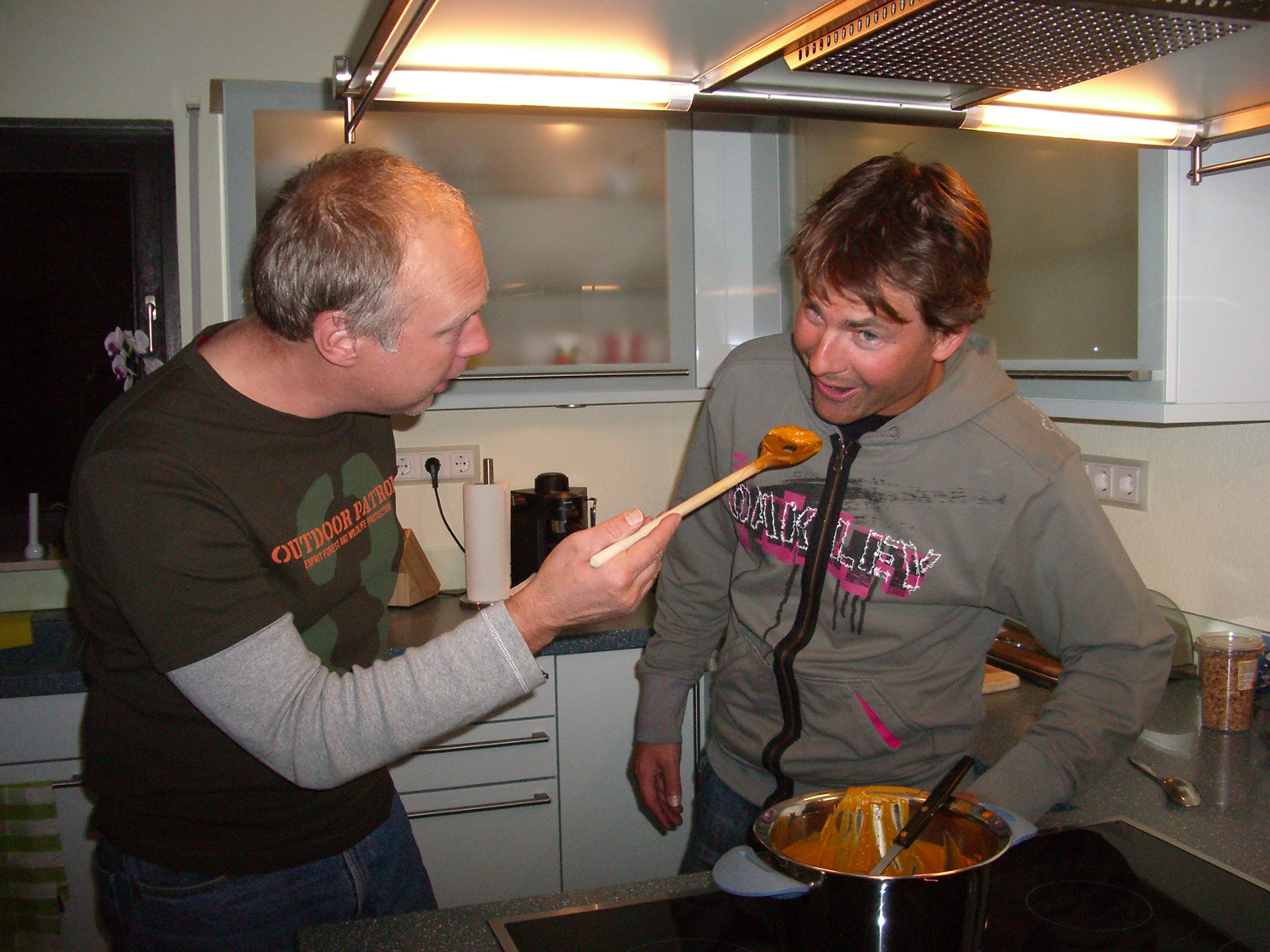 Beim schwungvollen Umgang mit dem Kochlöffel bewegten wir uns auf dem schmalen Grat zwischen kulinarischem Hochgenuß und Lebensmittelvergiftung.