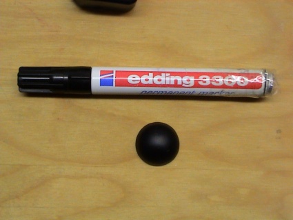 Zum Probieren hab ich mir zunächst mal eine genaue Kopie des Blindknopfes hergestellt. Damit alles auch gut ausschaut, hab ich einige Zeit nach der richtigen Farbe gesucht, mit welcher ich den Kunststoff einfärben kann, damit die Farbe und Oberfläche dem original entspricht. Fündig wurde ich schließlich bei edding. Gibt eine "seidenmatte" Oberfläche wie beim Original. Stift aufgesägt, Speicher ausgepresst und dem Kunststoff beigemischt)