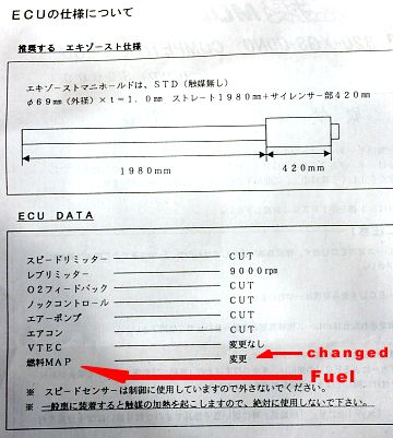 Also ich würde das sein lassen mit der Mugen ECU. Erstmal bringt die kaum was (irgendwas um die 10PS), dann muss Du mindestens den 100 Oktan Sprit fahren. Und was dann das absolute Ausschlußkriterium für Deutschland sein dürfte: