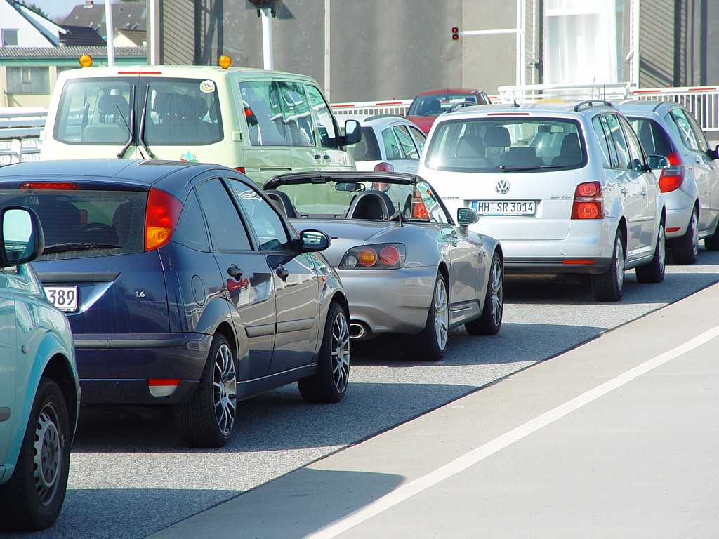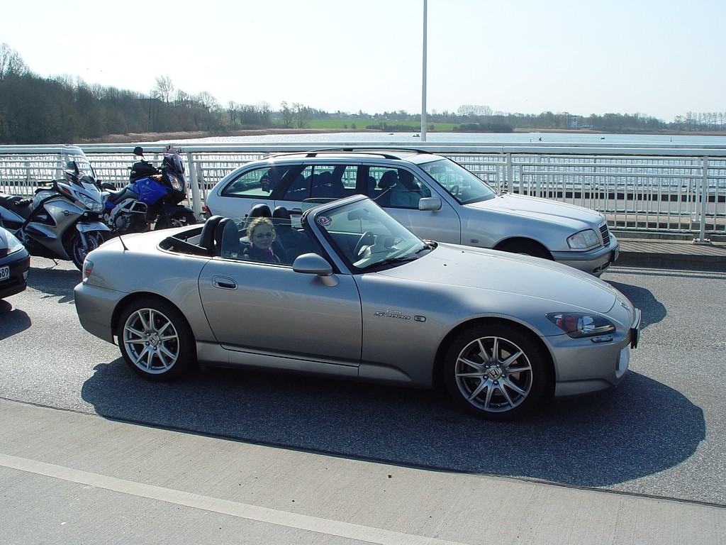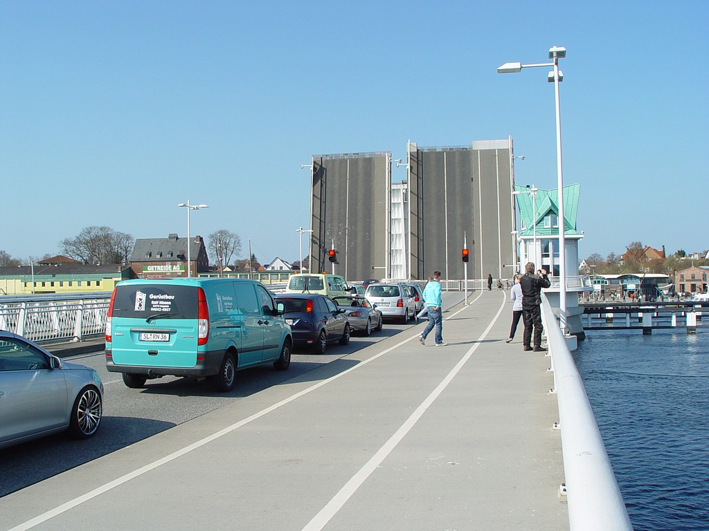 Hier warten wir in Kappeln vor einer Hängebrücke. Noch mit Winterreifen. ![]()